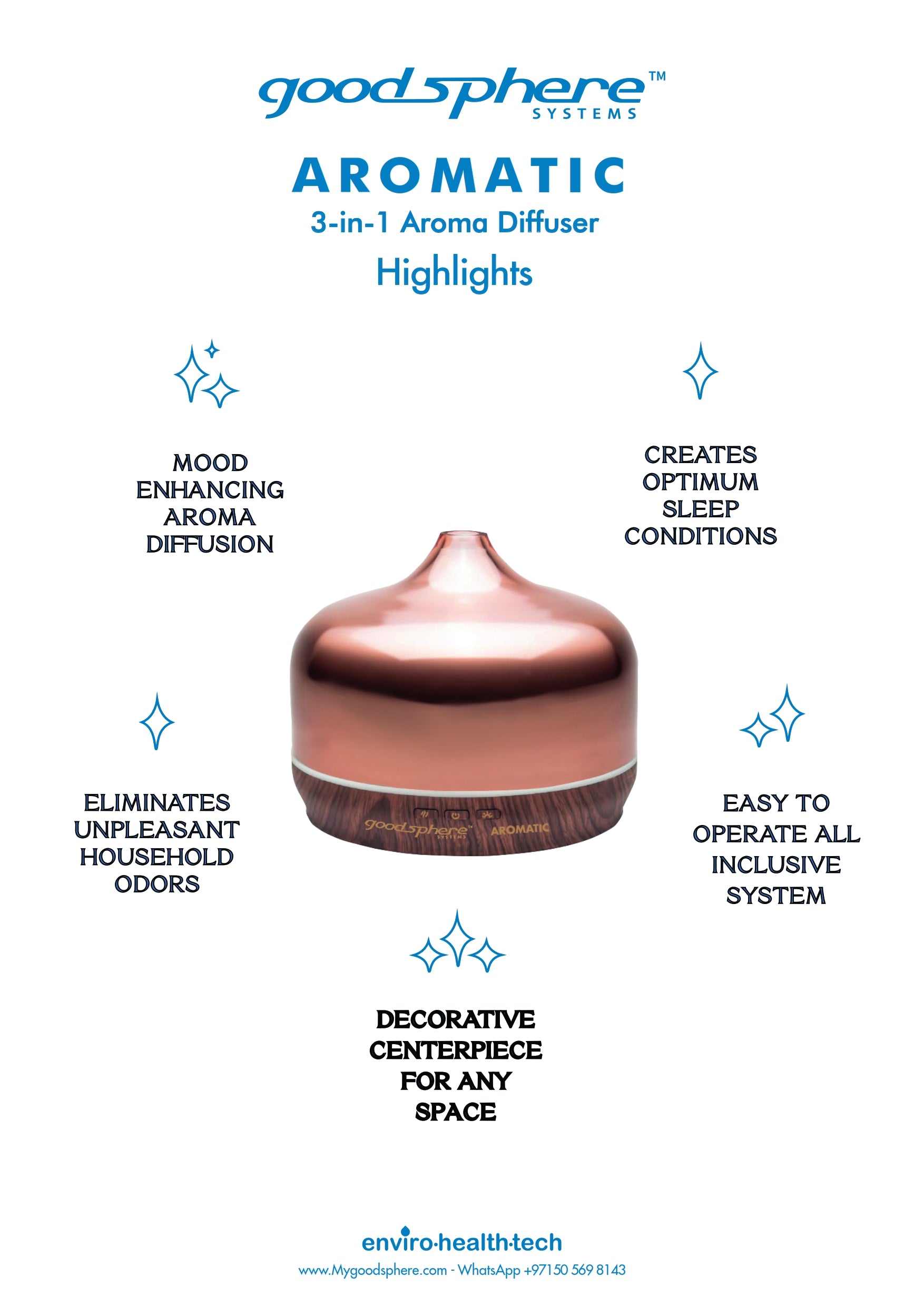 The Goodsphere Aromatic – Rose Gold Edition is our most stylish and versatile device yet — combining Aroma Diffuser, Ultrasonic Humidifier & Spectrum LED Light in one elegant system.