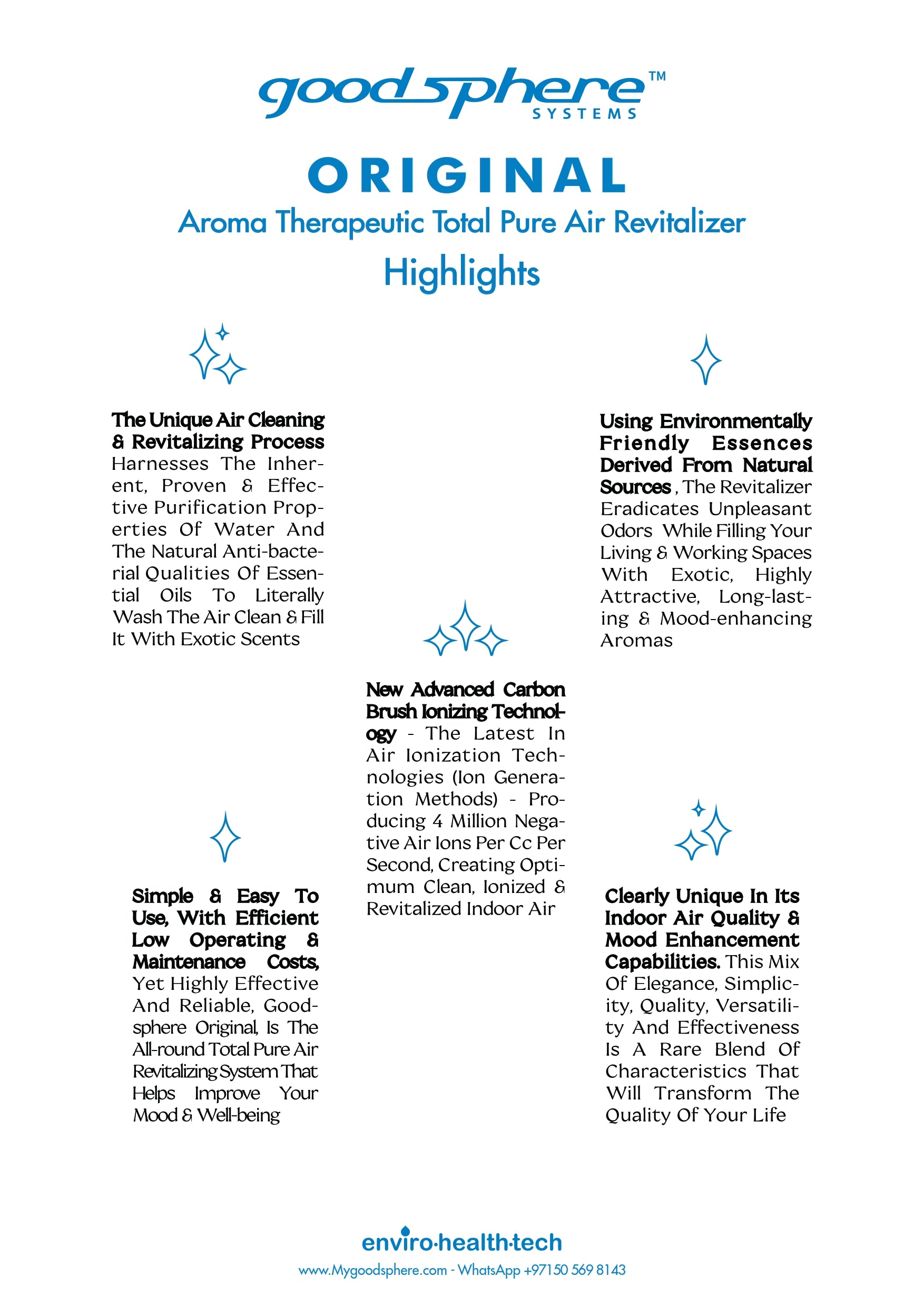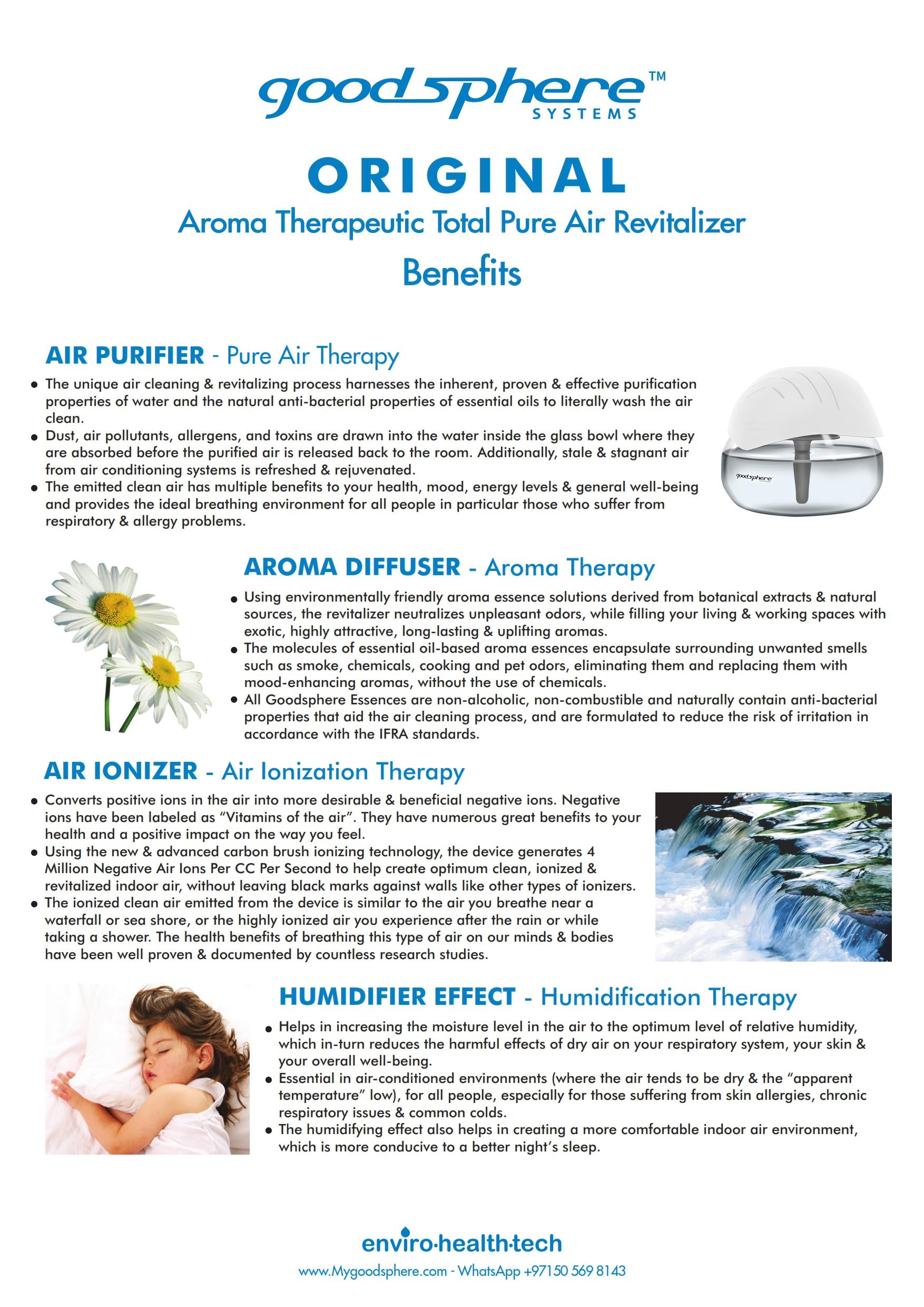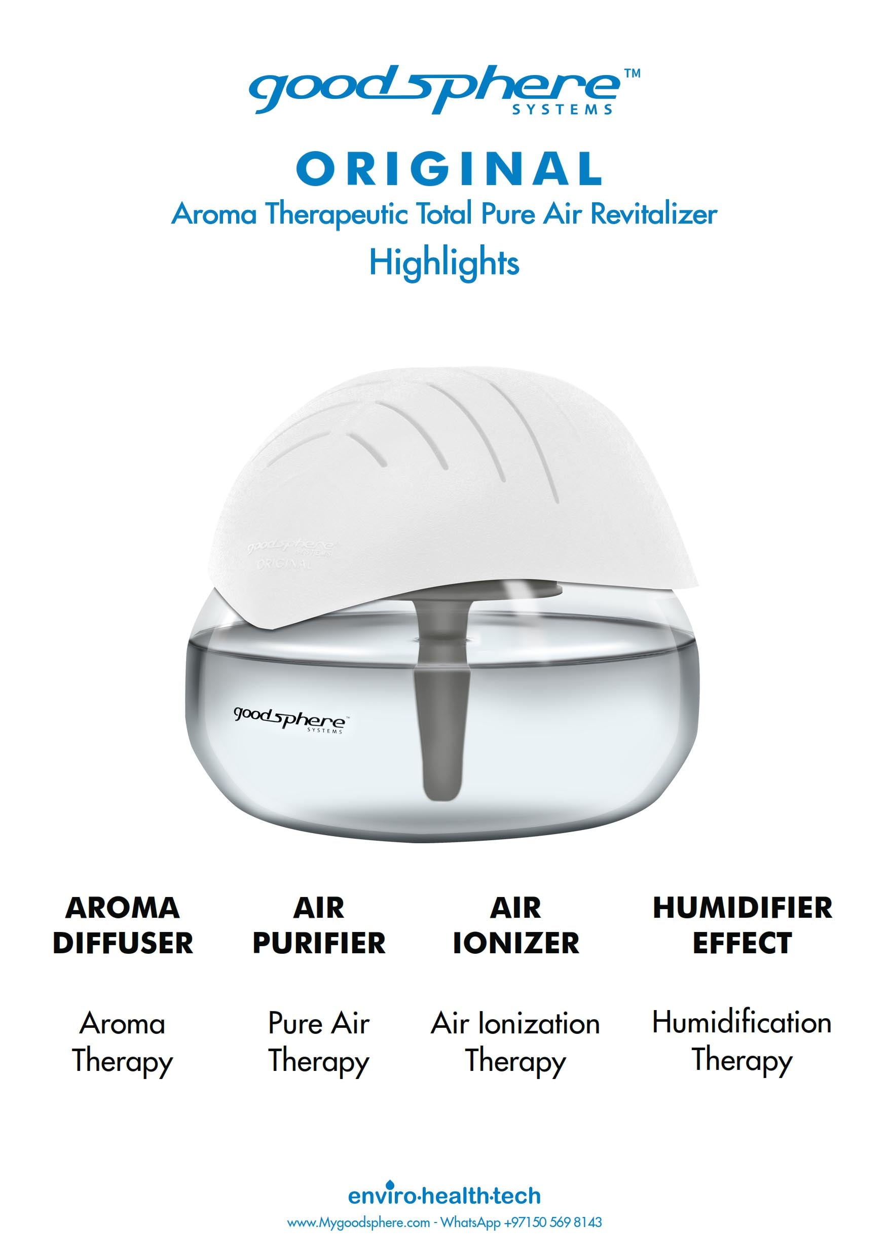 The Goodsphere Original is our signature aromatherapeutic total pure air revitalizing system, engineered to clean, refresh, and uplift your space using water-based purification and natural essences.