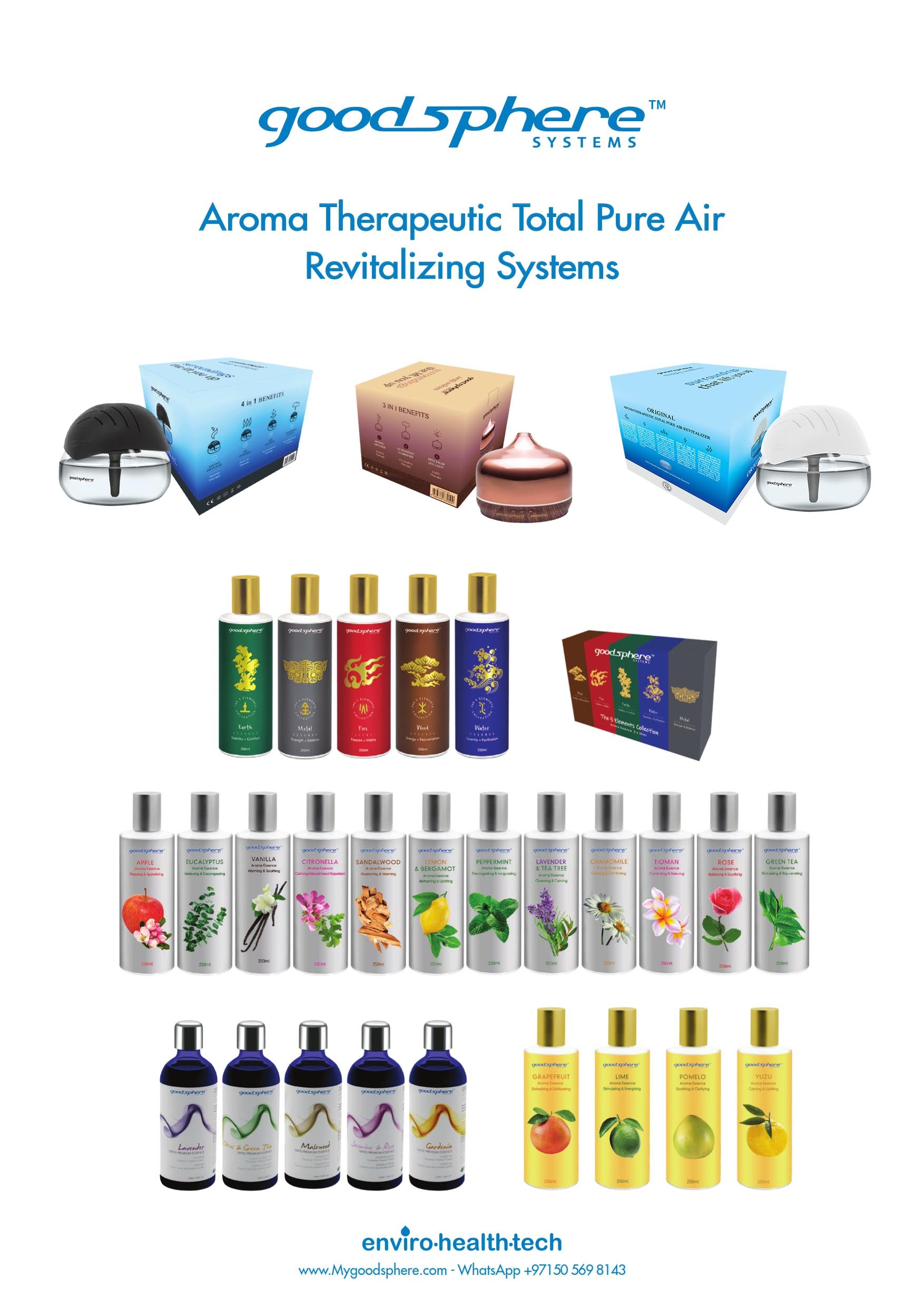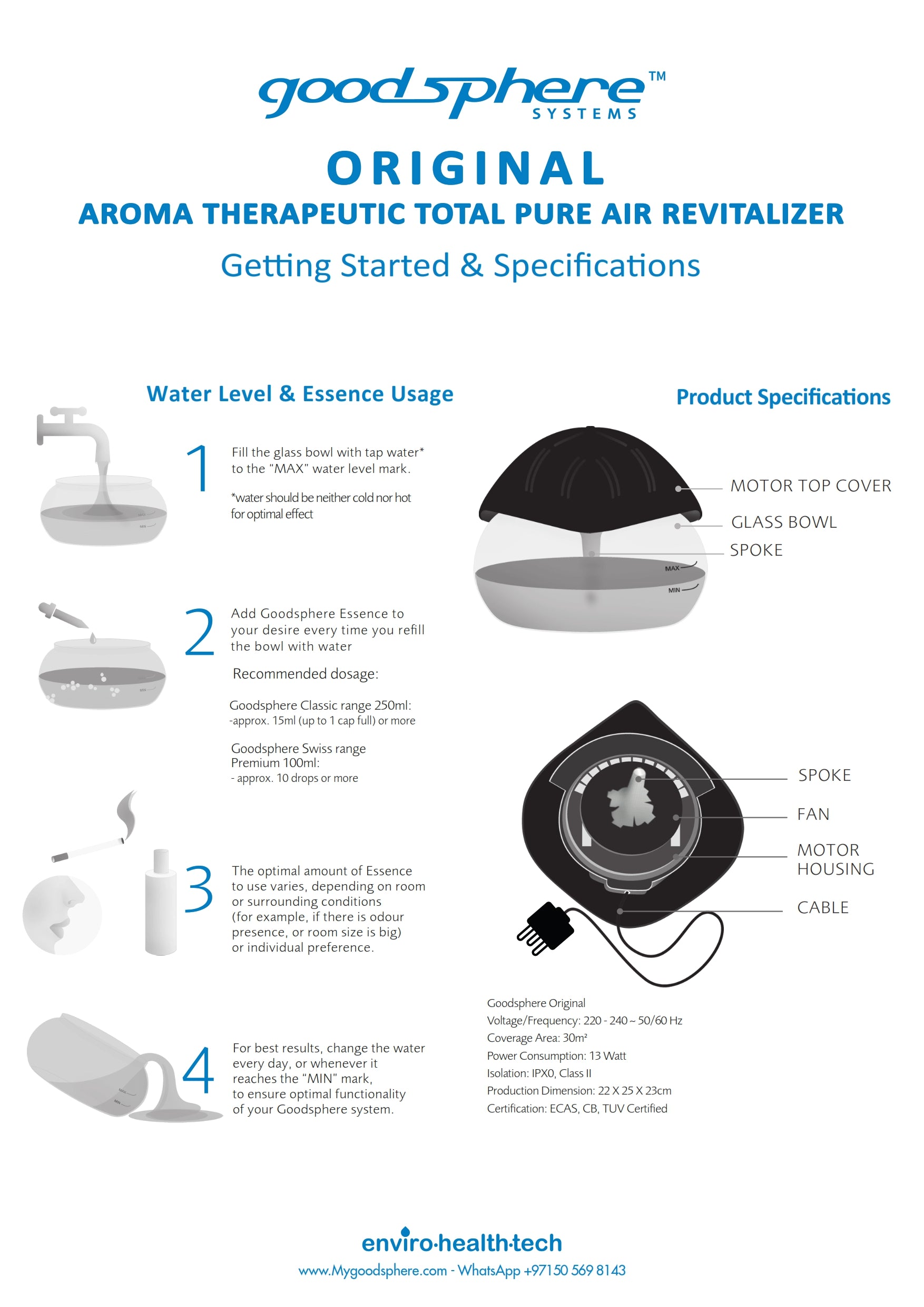 Add 3-5 drops of Goodsphere Essence per refill. Adjust intensity/quantity based on your scent preference. -